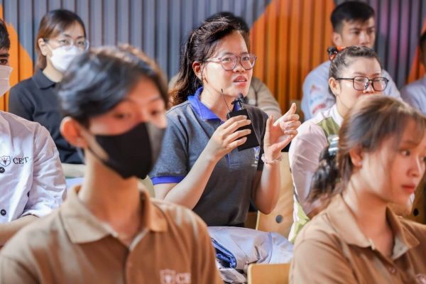 Thông qua những trải nghiệm thực tế, các thực tập sinh HNAAu và CET đang làm việc tại hệ thống Vinpearl cũng có những chia sẻ giúp khách tham dự hình dung rõ nét hơn những chính sách phúc lợi cũng như giá trị nhận được khi tham gia thực tập cùng AAujob và Vinpearl.